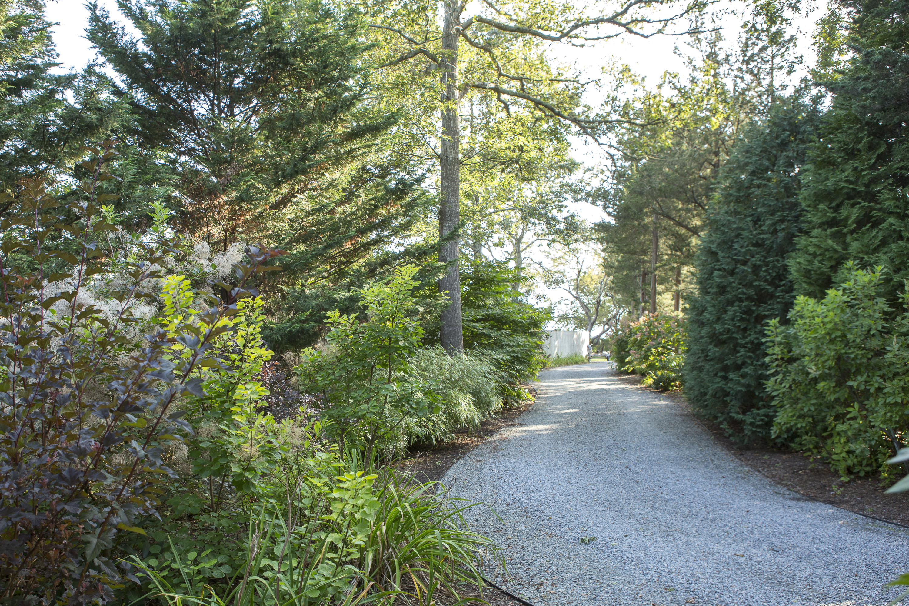 arms around the new beds of Hydrangeas. A circle of bright lawn is bordered by the